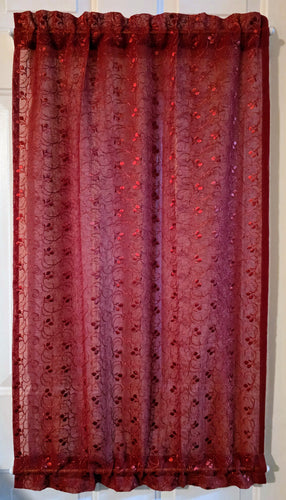 Ready-Made Sidelight Curtains - Embroidered Cranberry Fabric